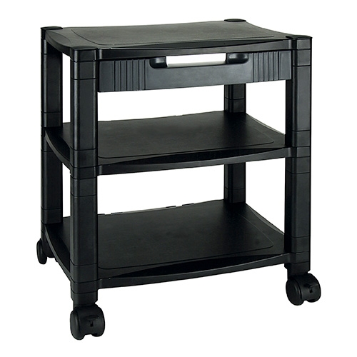 Dos o tres estantes que brindan almacenamiento para papel de impresora, cartuchos de tinta y más.