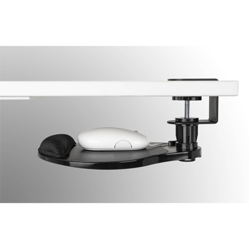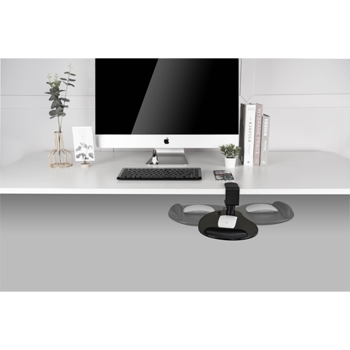 La plataforma gira 360º y mantiene el ratón debajo del escritorio para ahorrar espacio.