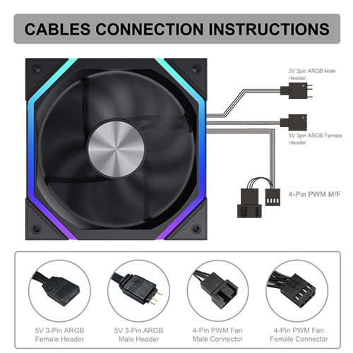 Cable Length : 4pin(M/F) PWM Power / 3pin Aura Male head / 3pin Aura Female head, 500/500/500mm