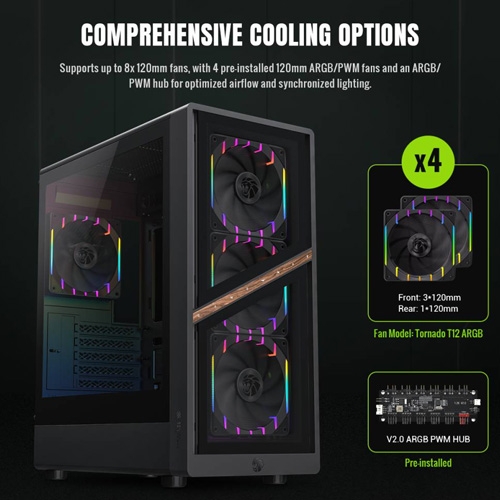 Front: 3x120mm (Tornado T12 ARGB)