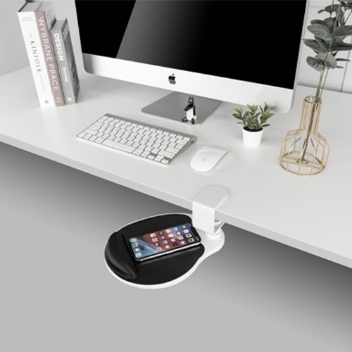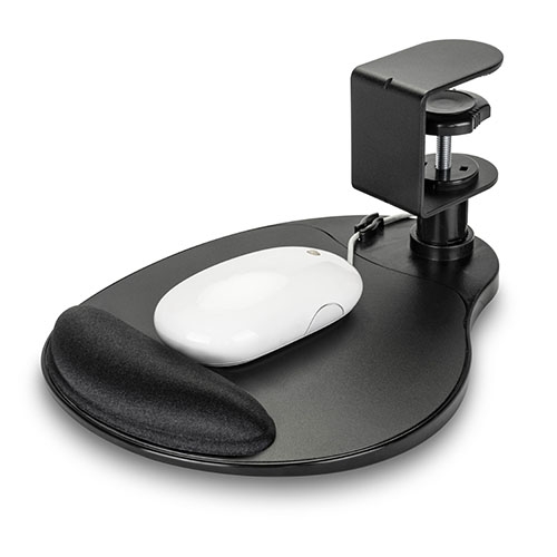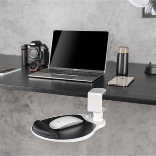 La plataforma gira 360º y mantiene el ratón debajo del escritorio para ahorrar espacio.