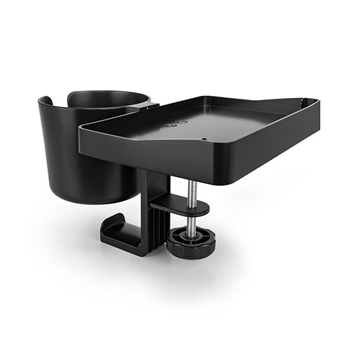 Incluyegancho para auriculares, bolsos, carteras, etc. Abrazadera de metal resistente que se adapta a escritorios de hasta 55 mm. Sostiene vasos y tazones o diversos artículos de papelería. Espacio para papel de notas.